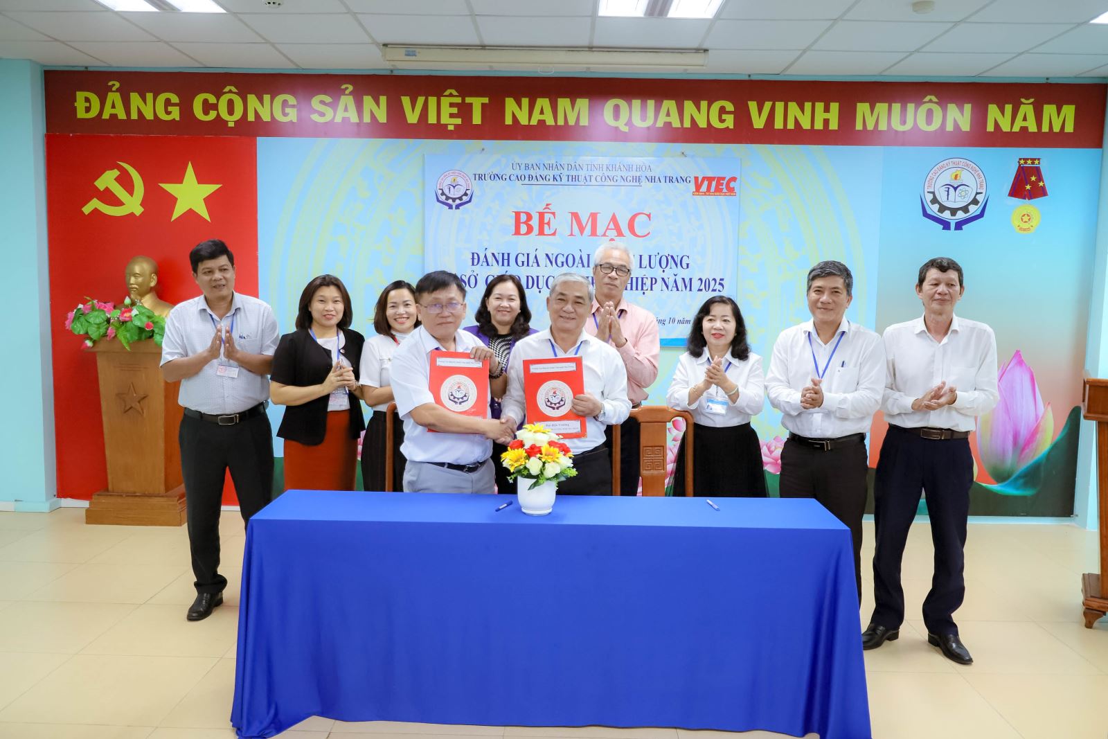 Chiều ngày 15 tháng 10 năm 2025, Trường Cao đẳng Kỹ thuật Công nghệ Nha Trang long trọng tổ chức Bế mạc đánh giá ngoài chất lượng cơ sở giáo dục nghề nghiệp năm 2025, do Công ty Cổ phần Kiểm định và Tư vấn chất lượng giáo dục nghề nghiệp VTEC thực hiện.