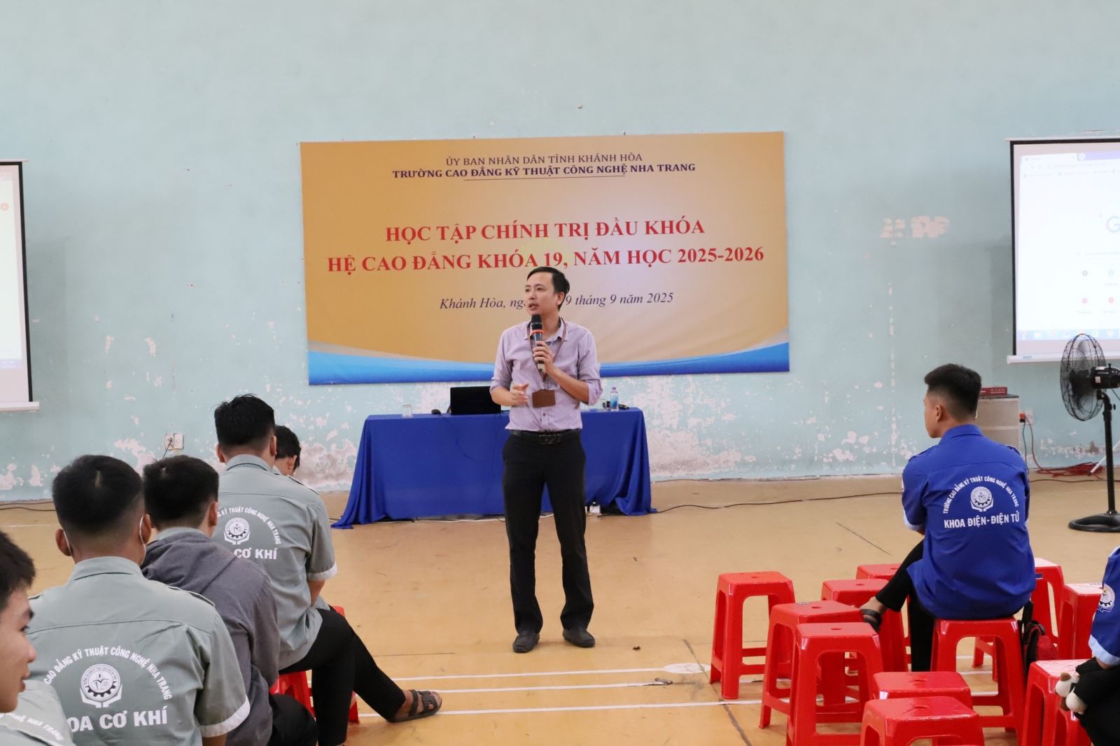 Thực hiện nhiệm vụ năm học 2025-2026, từ ngày 15 đến 19 tháng 9 năm 2025 Nhà trường tổ chức học tập chính trị đầu khóa cho gần 500 sinh viên hệ Cao đẳng khóa 19 Năm học 2025-2026.