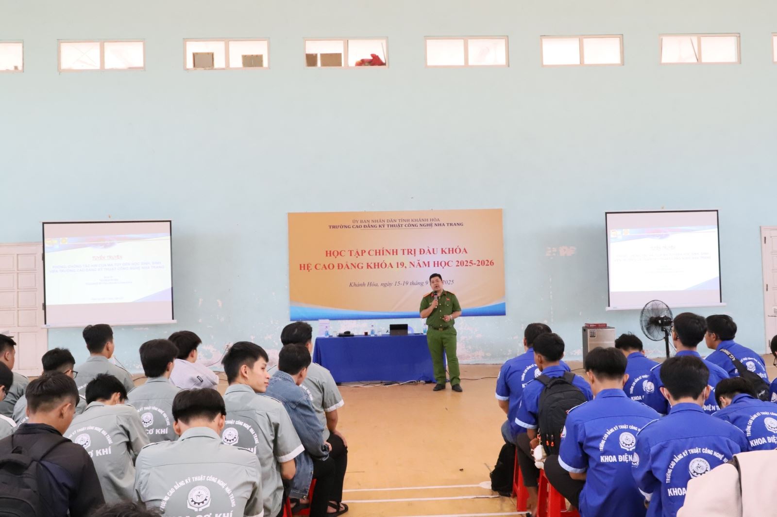 - Kết thúc chương trình học tập chính trị đầu khóa tại Trường Cao đẳng Kỹ thuật Công nghệ Nha Trang không chỉ trang bị kiến thức cho sinh viên mà còn hình thành kỹ năng tự bảo vệ, nâng cao ý thức trách nhiệm với bản thân, Nhà trường và xã hội.