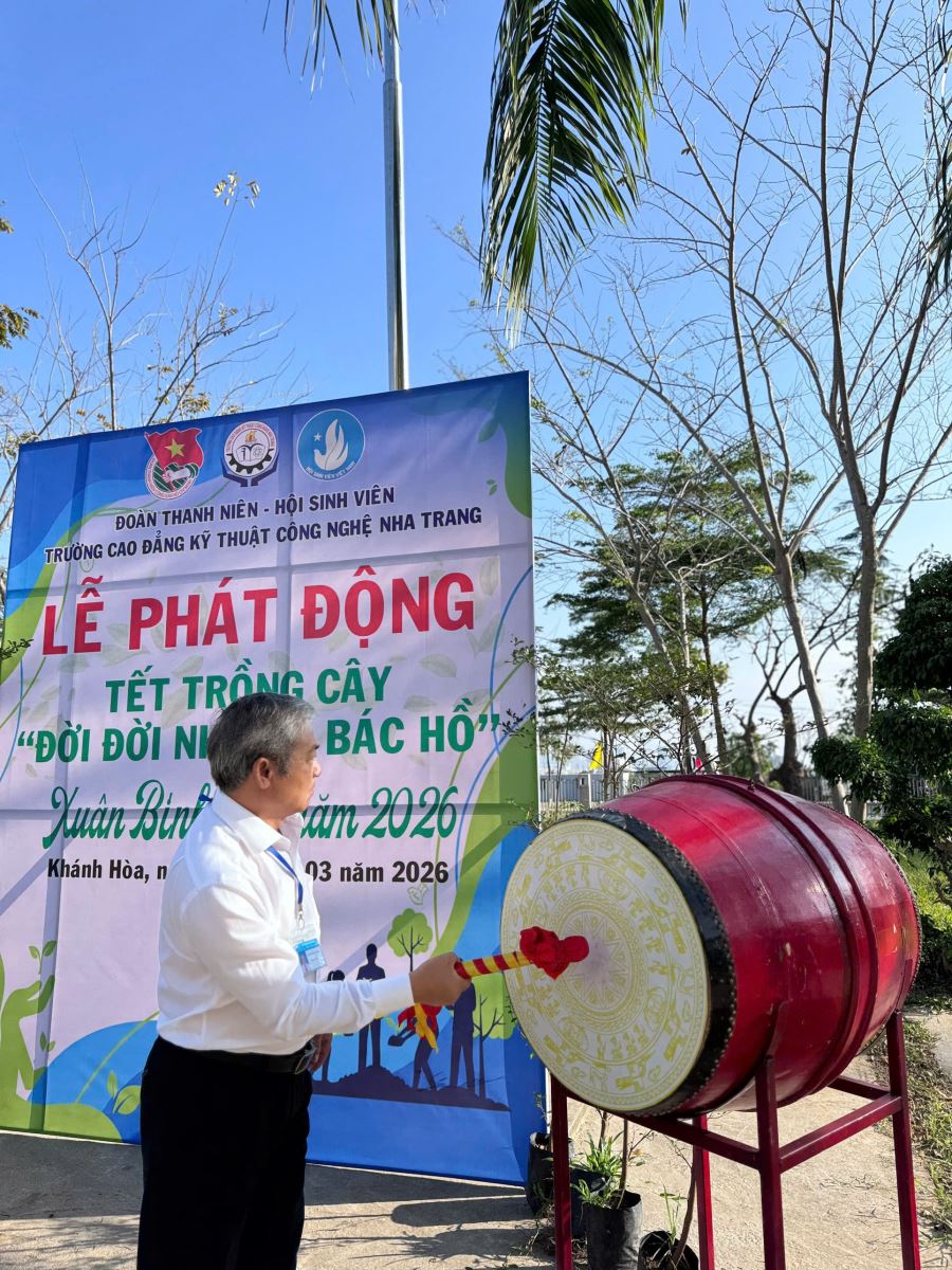 Đoàn thanh niên Trường Cao đẳng Kỹ thuật Công nghệ Nha Trang phối hợp phòng Đào tạo – Cơ sở vật chất tổ chức Lễ phát động Tết trồng cây “Đời đời nhớ ơn Bác Hồ” nhân dịp Xuân Bính Ngọ năm 2026 tại cột mốc Trường Sa trong khuôn viên trường.
