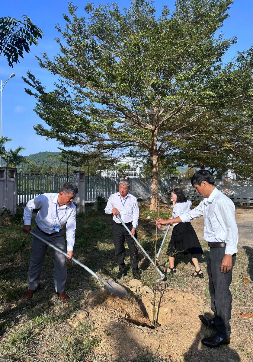 - Thay mặt lãnh đạo nhà trường, ThS. Nguyễn Văn Lực – Bí thư Đảng ủy, Hiệu trưởng đã thực hiện nghi thức đánh trống phát động và chỉ đạo xuyên suốt phong trào trồng cây trong năm học mới. Khẳng định ý nghĩa của hoạt động, thầy nhấn mạnh: “Việc trồng cây không chỉ dừng lại ở việc tôn tạo cảnh quan, mà còn là minh chứng cho tinh thần trách nhiệm của thế hệ trẻ trước sứ mệnh bảo vệ môi trường và ứng phó với biến đổi khí hậu”.