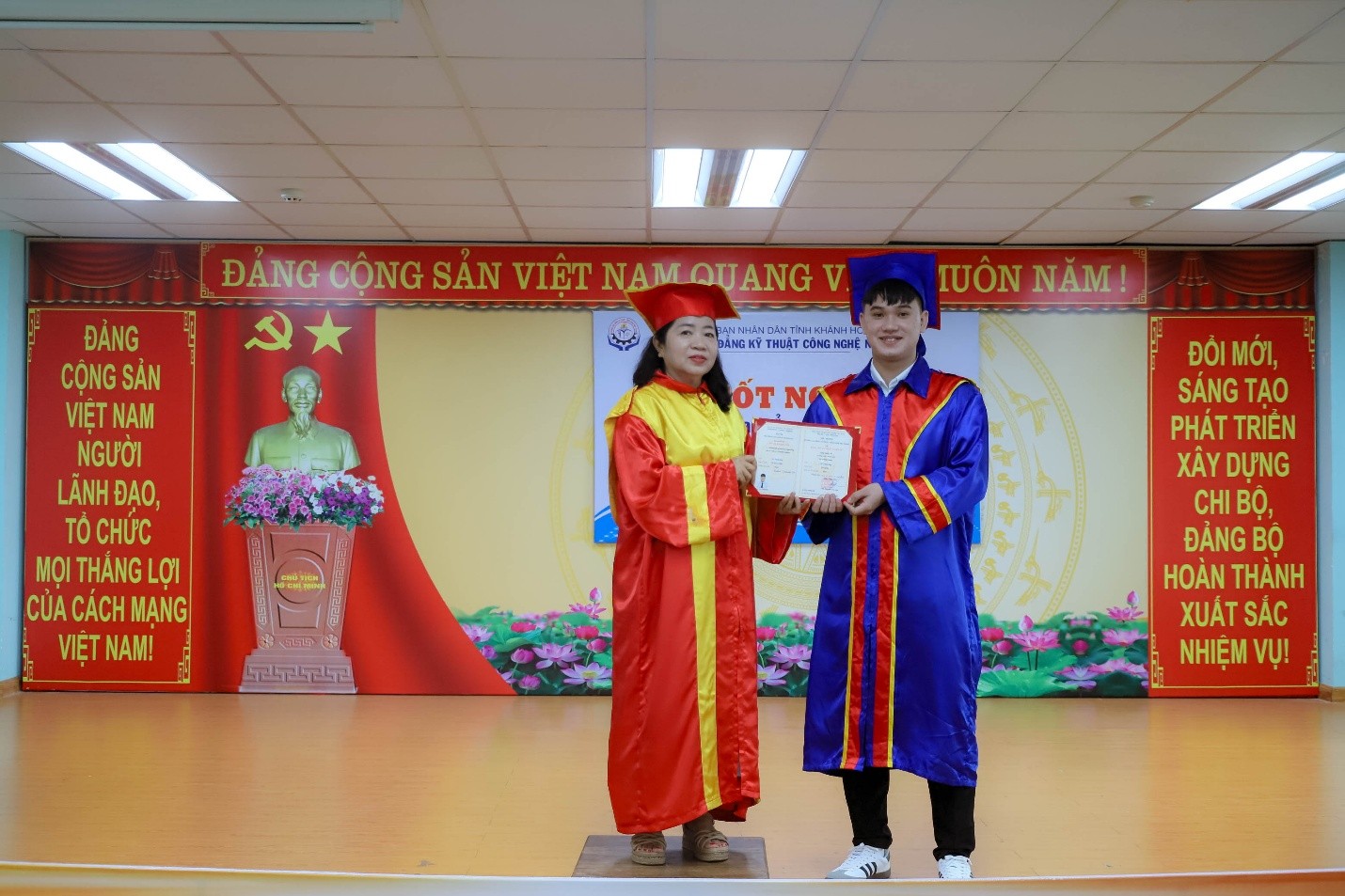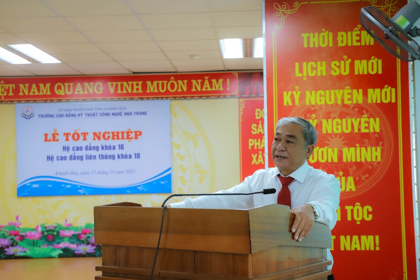 Sáng ngày 17/10/2025, Trường Cao đẳng Kỹ thuật Công nghệ Nha Trang long trọng tổ chức Lễ trao bằng tốt nghiệp cho 361 sinh viên thuộc hệ cao đẳng khóa 16 (đợt 2) và hệ cao đẳng liên thông từ trung cấp khóa 18.