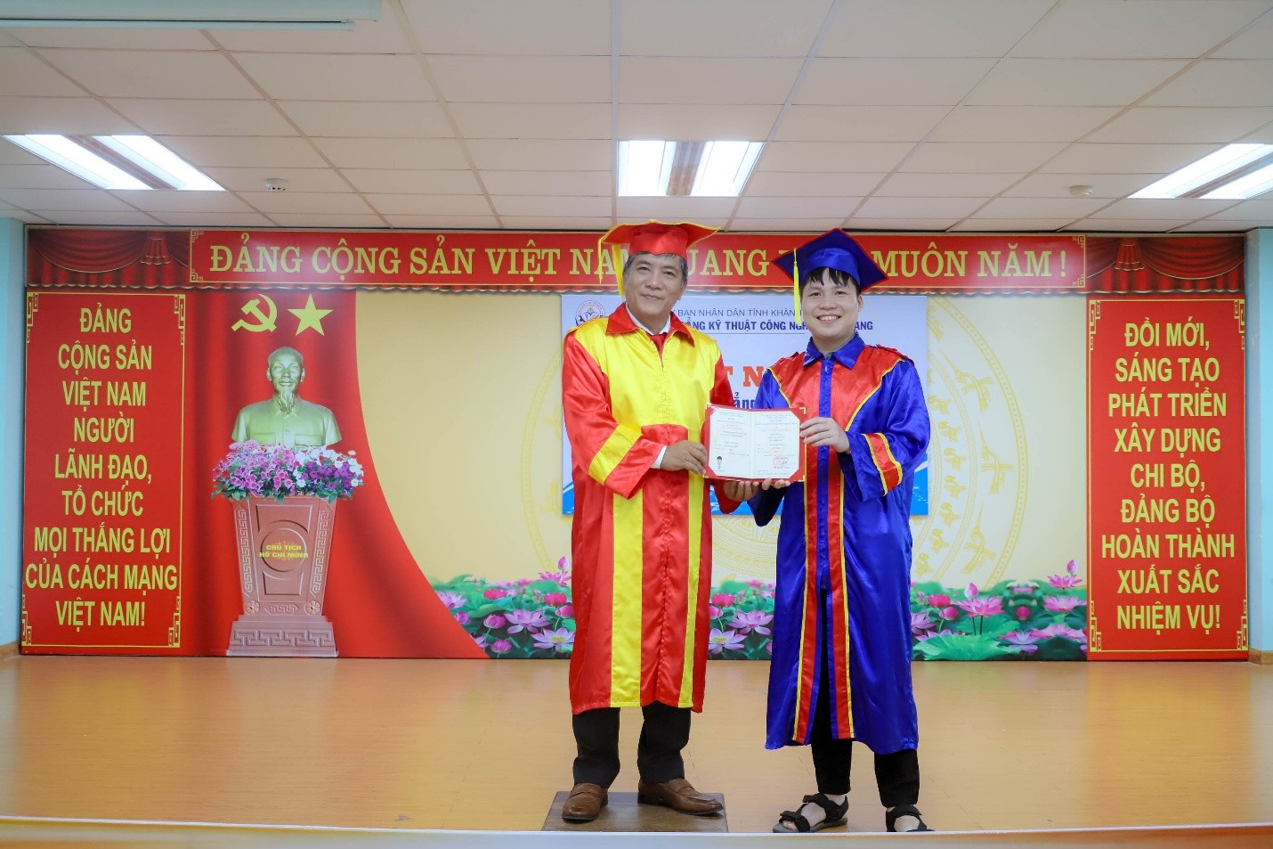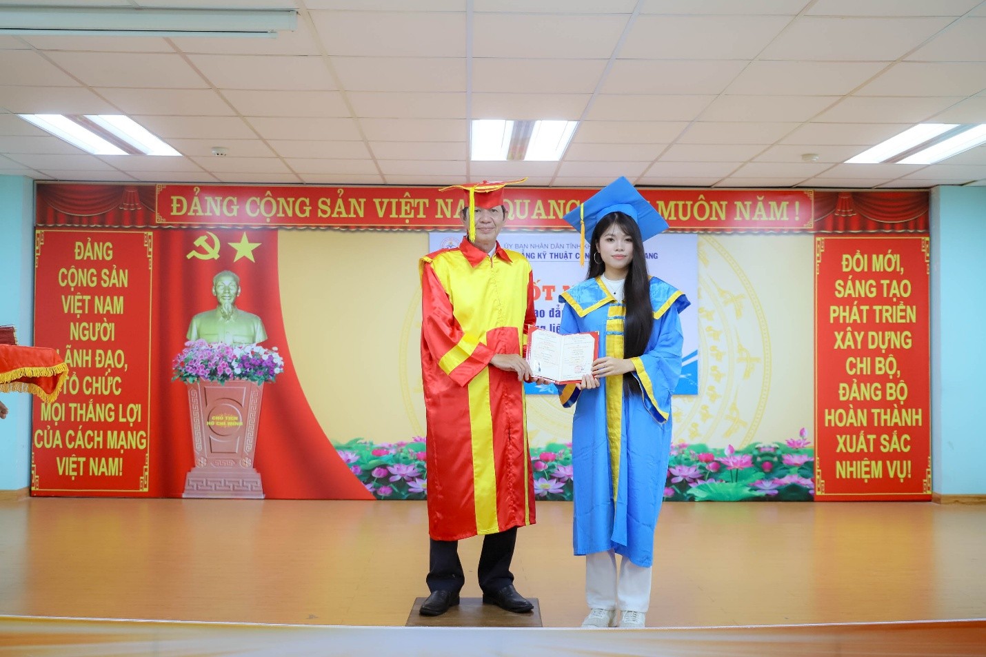 Ban giám hiệu trao bằng tốt nghiệp cho các sinh viên