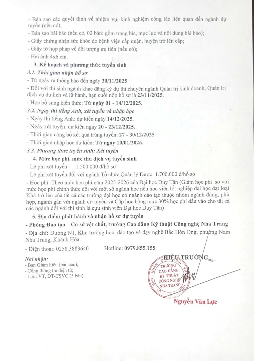 Riêng thí sinh trái ngành đăng ký QTKD, Du lịch – Lữ hành: hạn cuối 23/11/2025