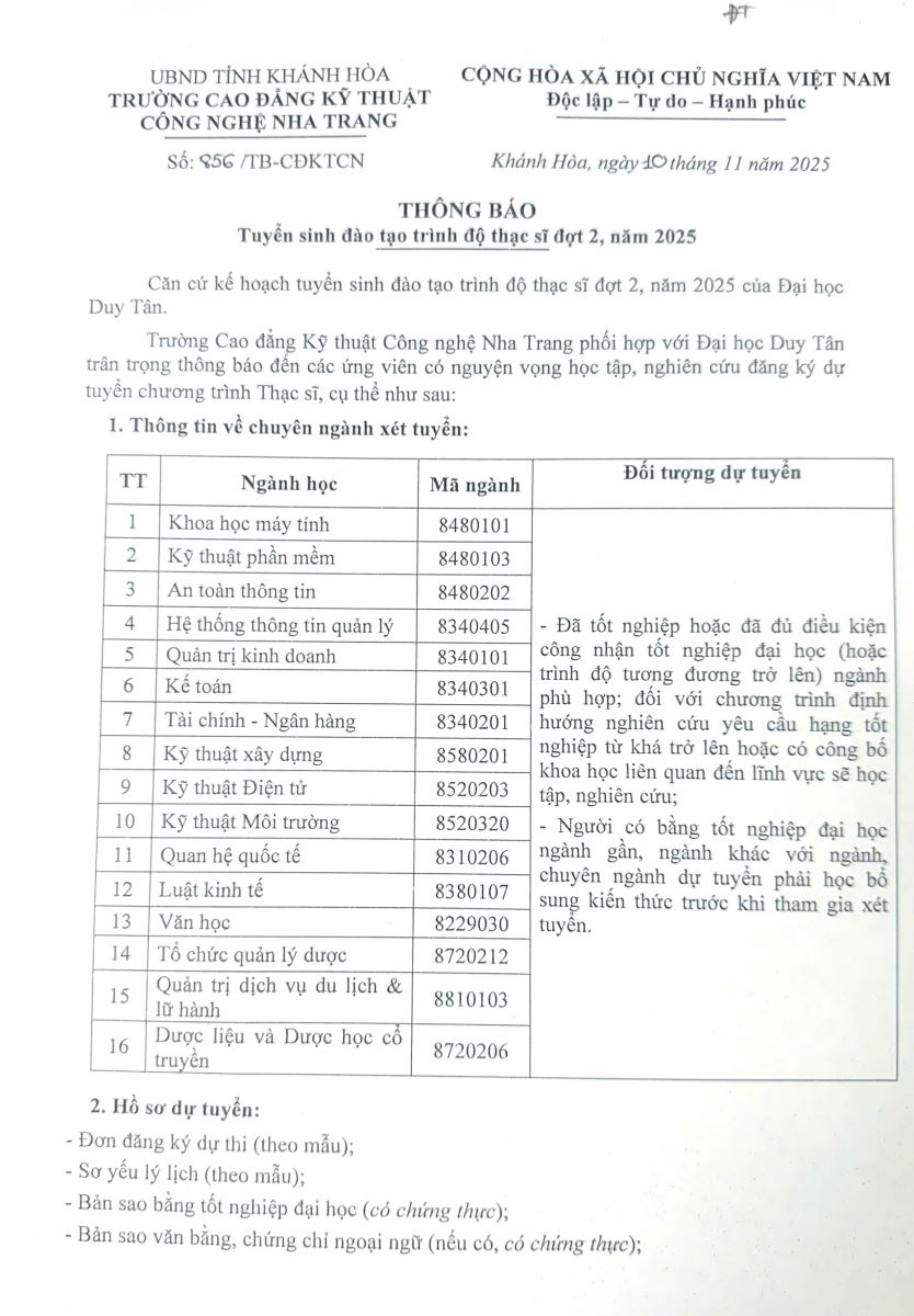 Trường Cao đẳng Kỹ thuật Công nghệ Nha Trang phối hợp cùng Đại học Duy Tân