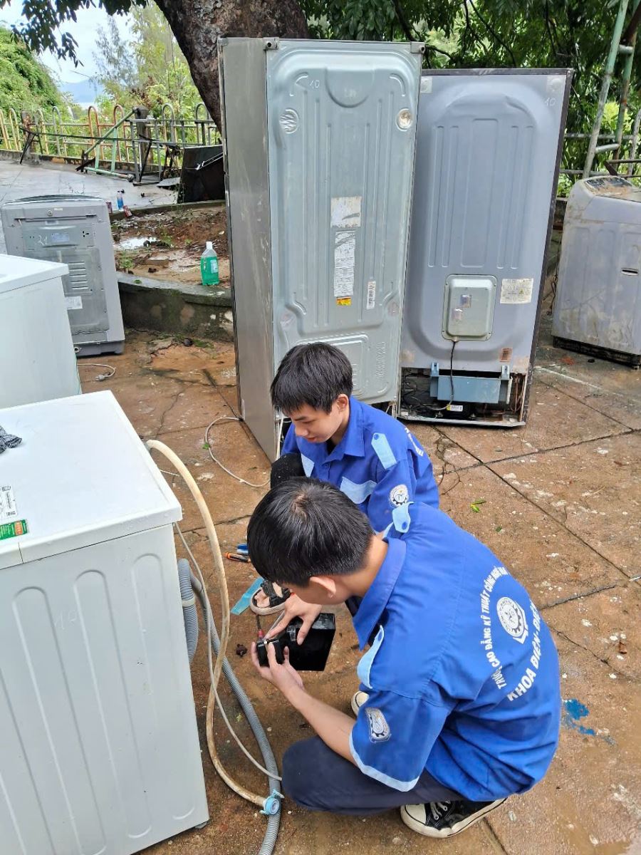 1. Nhà trường tiếp nhận kiểm tra, sửa chữa các thiết bị điện hư hỏng do ngập lụt, bao gồm: Tủ lạnh; Máy giặt; Quạt điện; Nồi cơm điện; bếp hồng ngoại, bếp từ.